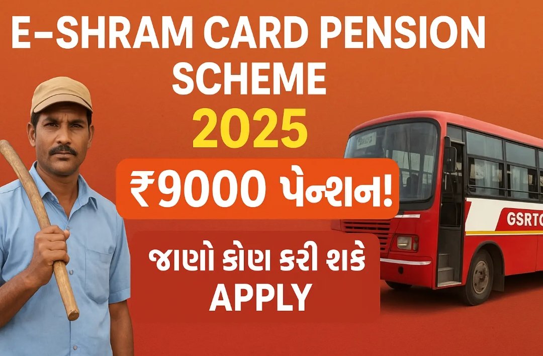 E-Shram Card Pension Scheme 2025: મજૂરી વર્ગ માટે મોટી ખુશખબર. ભારત સરકાર E-Shram Card Pension Scheme 2025 લોંચ કરી છે, જે ખાસ કરીને અસંગઠિત ક્ષેત્રના મજૂર વર્ગ માટે છે. આ સ્કીમ હેઠળ હવે કામદારોને સીધું ₹9000 પ્રતિ માસ pension મળશે.