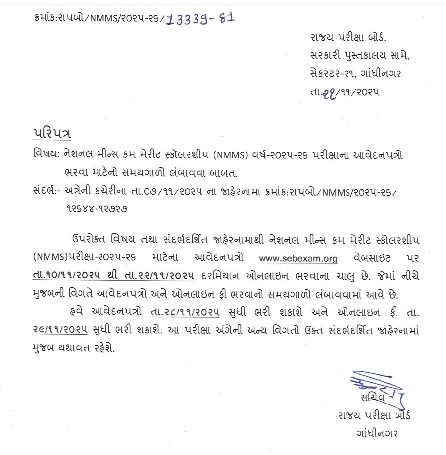 The NMMS Gujarat Scholarship 2025-26 is available for Class 8 students who belong to low-income families to receive financial support. Keep checking sebexam.org for all major updates on NMMS Gujarat 2026.